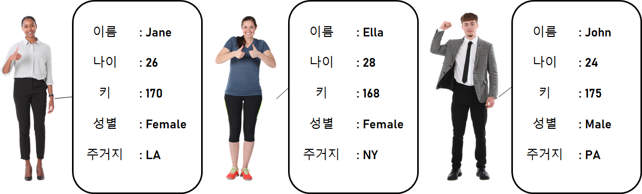 개요 4일만에 안드로이드 개발을 배우고,, 시작하고,, 완성은아니지만 간단하게나마 끝을 냈다! 안드로이드로 유저인증을 공부하면서 firebase를 알게되었고 이것저것 찾다보니 어느정도 어떤 느낌인지 그리고 내가 익숙했던 RDBMS와 다른건 무엇인지 대략적으로 알게 되었다. 그래서 이를 정말 간단하게나마 기록해두려고 한다. 본문 다음과 같은 3명의 사람을 각각 관계형 데이터베이스(SQL)와 비관계형 데이터베이스(NoSQL)로 표현해보고자 합니다. 관계형 데이터베이스 먼저 관계형 데이터 베이스는 Person이라는 테이블에 각 사람을 Row(혹은 Record)로 저장하고, 이들의 특징(ex. 이름, 나이, 키 etc)을 column(혹은 Attribute)로 표현합니다. 테이블을 그려보면 다음과 같습니다. 이..