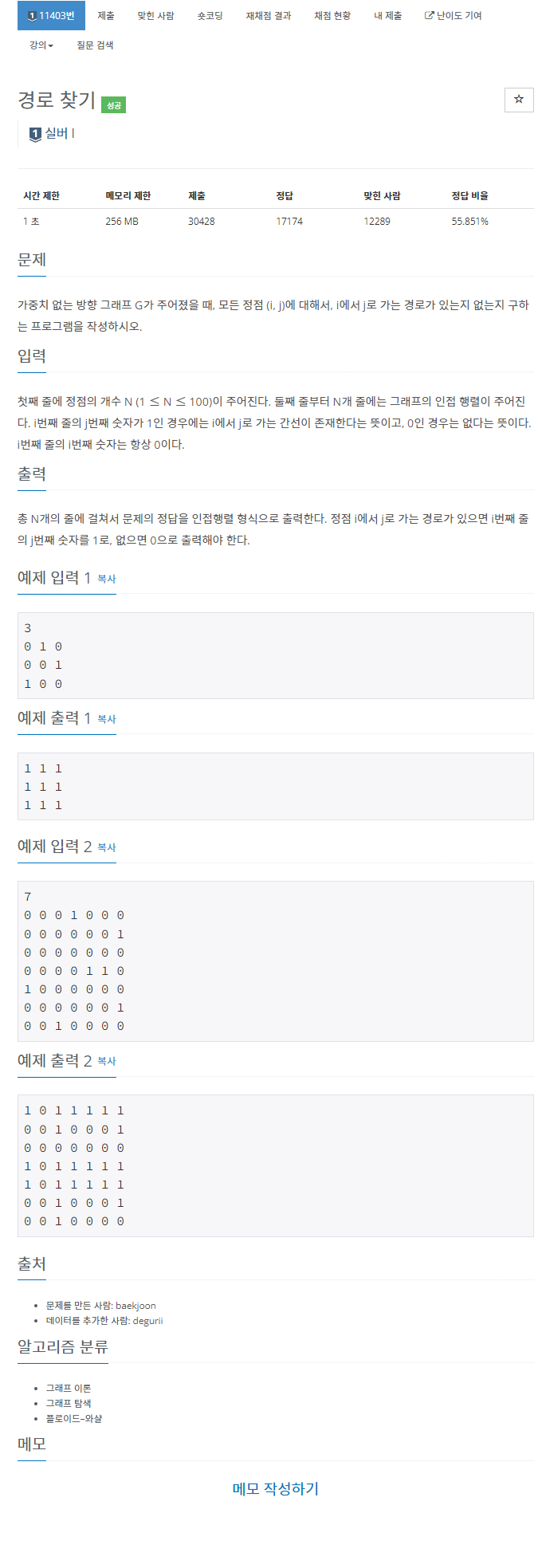 목차 개요 본문 1) 문제 2) 과정 3) 코드 전체 개요 이번에 알고리즘 스터디에서 JAVA를 이용해 백준 11265번 끝나지 않는 파티를 풀었습니다. 이를 정리해보고자 합니다. 11265번: 끝나지 않는 파티 입력의 첫 번째 줄에는 파티장의 크기 N(5 ≤ N ≤ 500)과 서비스를 요청한 손님의 수 M(1 ≤ M ≤ 10,000) 이 주어진다. 각각의 파티장은 1번부터 N번까지 번호가 붙여져 있다. 다음에는 N개의 줄에 걸 www.acmicpc.net 본문 1) 문제 2) 과정 shortest path니까 다익스트라 알고리즘을 사용하면 되겠지 싶었는데, 자꾸 시간초과가 발생하길래 다른 방법을 찾다 해당 문제를 플로이드 와샬 알고리즘으로 풀어야한단걸 알게되었습니다... 처음엔 오히려 다 구하면 오래 ..
