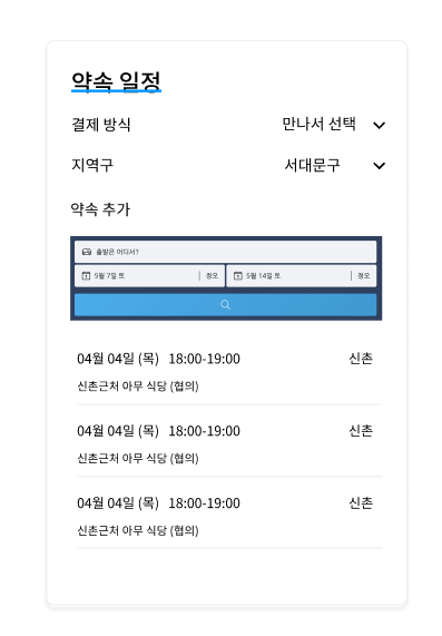 개요 오늘도 즐거운 팀프 코딩 시간.... 현재 작업중인 컴포넌트는 아래와 같은 컴포넌트를 만드는 것입니다. 약속추가 부분의 날짜를 받는 부분을 실제로 구현하려다 라이브러리가 있는지 먼저 찾아보며 봤던 사이트를 공유/기록 하고자 올리게 되었습니다. 본론 https://blog.bitsrc.io/13-react-time-and-date-pickers-for-2020-d52d88d1ca0b 13 React DatePickers and TimePickers for 2020 Useful React components and libraries that save you time when letting users choose their own time. blog.bitsrc.io 여러 사이트를 봤지만 해당 사이트가 ..